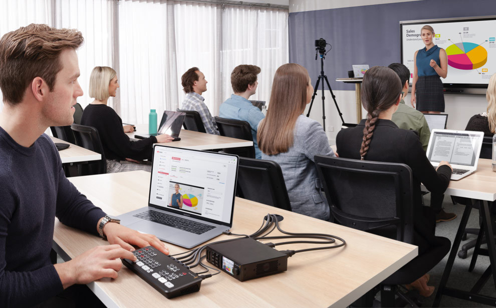 Live streaming 教育・トレーニング・セミナー あらゆる現場に赴き、マルチカムで幅広い教育テーマを扱ったビデオをライブ収録できます。前に立つ人物、会場(教室)の様子、黒板やコンピューター画面をスイッチングしてライブ放映可能です。 Live streaming に戻る→